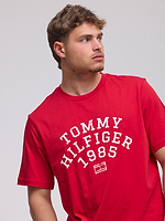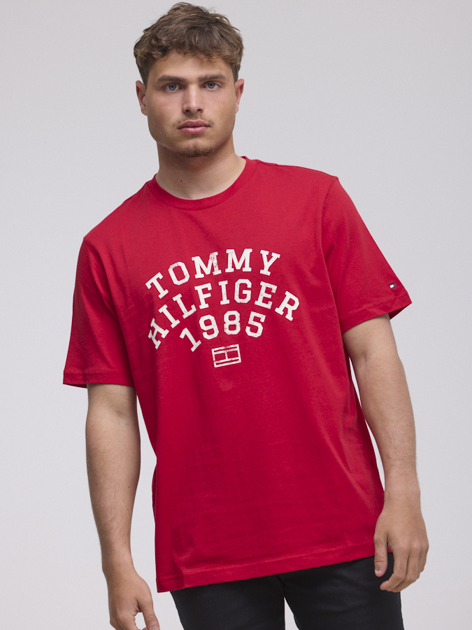 TOMMY HILFIGER logo t shirt חולצה בצבע אדום עם הדפס בחזית המוצר הילפיגר 1985