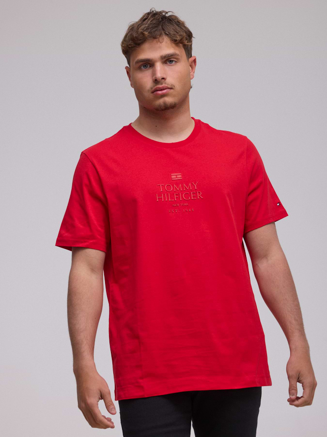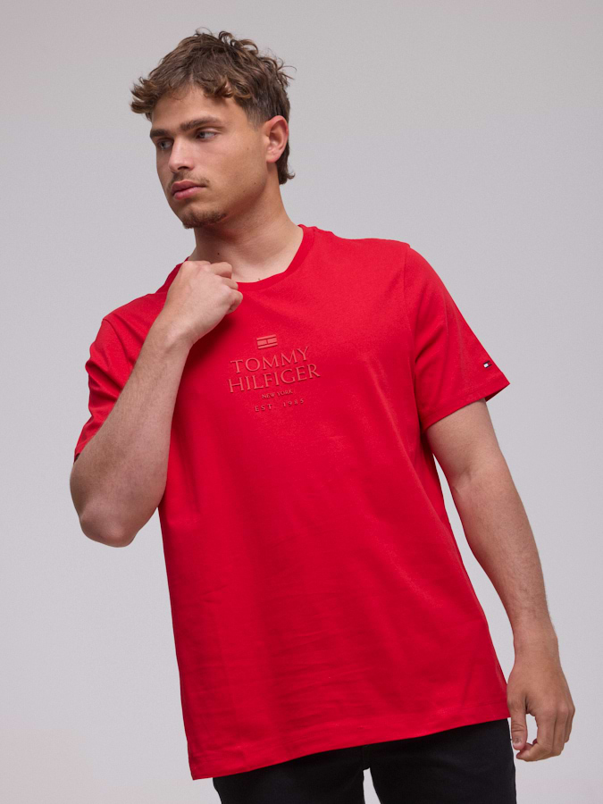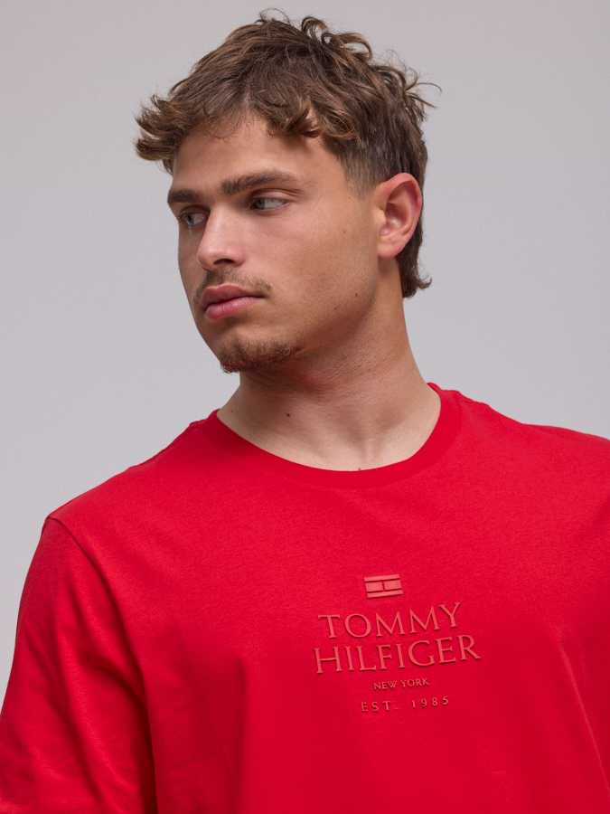 TOMMY HILFIGER logo t shirt חולצה בצבע אדום עם לוגו המותג באדום טון על טון