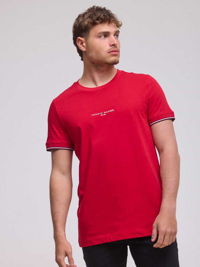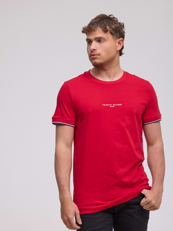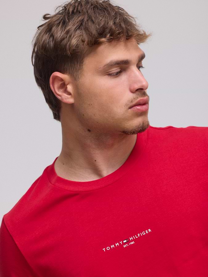 TOMMY HILFIGER logo t shirt חולצה בצבע אדום עם לוגו מלל במרכז המוצר