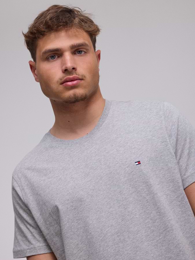 TOMMY HILFIGER logo t shirt חולצה בצבע אפור לוגו קטן צידי