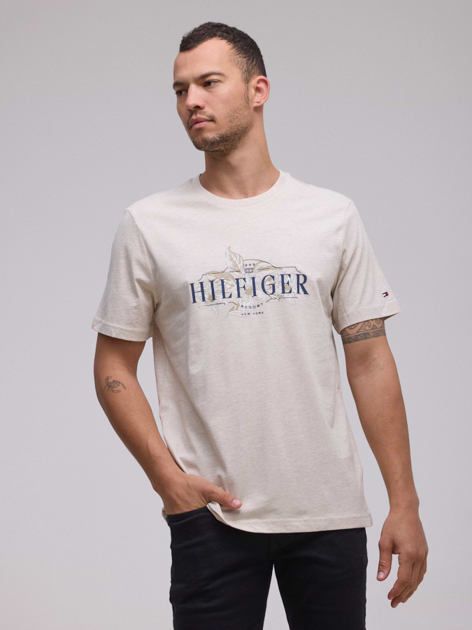TOMMY HILFIGER logo t shirt חולצה בצבע בז' עם לוגו גדול בחזית המוצר הילפיגר