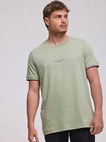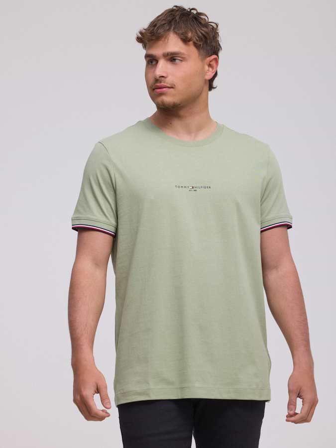 TOMMY HILFIGER logo t shirt חולצה בצבע ירוק פיסטוק עם לוגו מלל במרכז המוצר