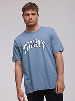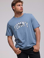 TOMMY HILFIGER logo t shirt חולצה בצבע כחול מעושן לוגו גדול במרכז המוצר משולב רקמה קטנה בחזית