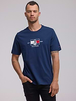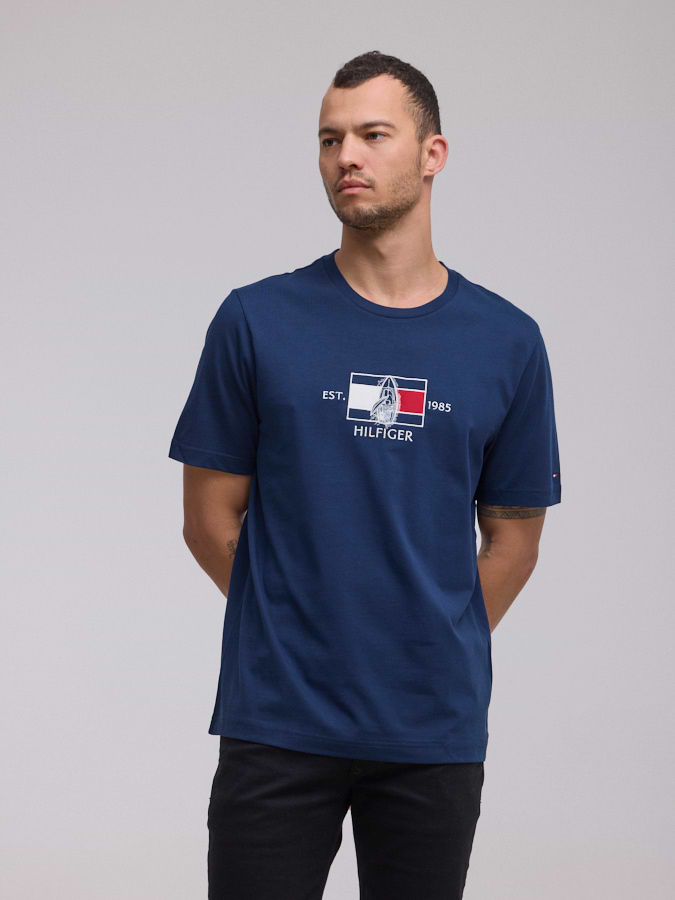 TOMMY HILFIGER logo t shirt חולצה בצבע כחול רקמה כריש בתוך לוגו המותג