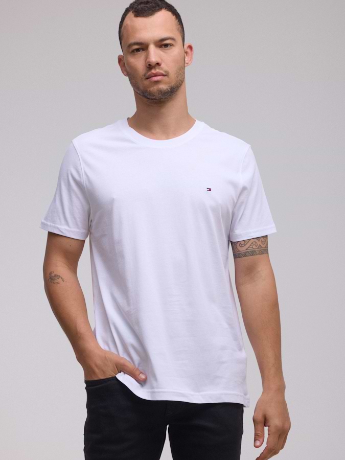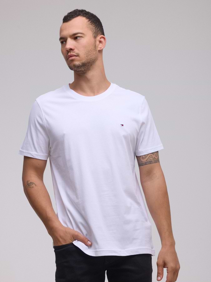 TOMMY HILFIGER logo t shirt חולצה בצבע לבן בייסיק לוגו קטן צידי