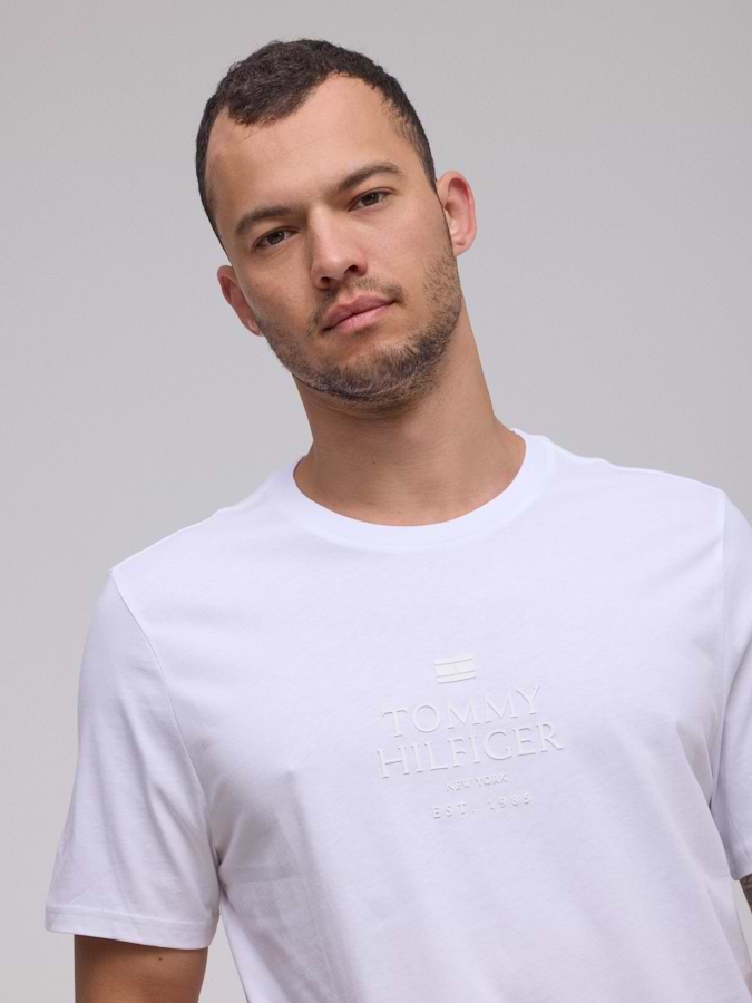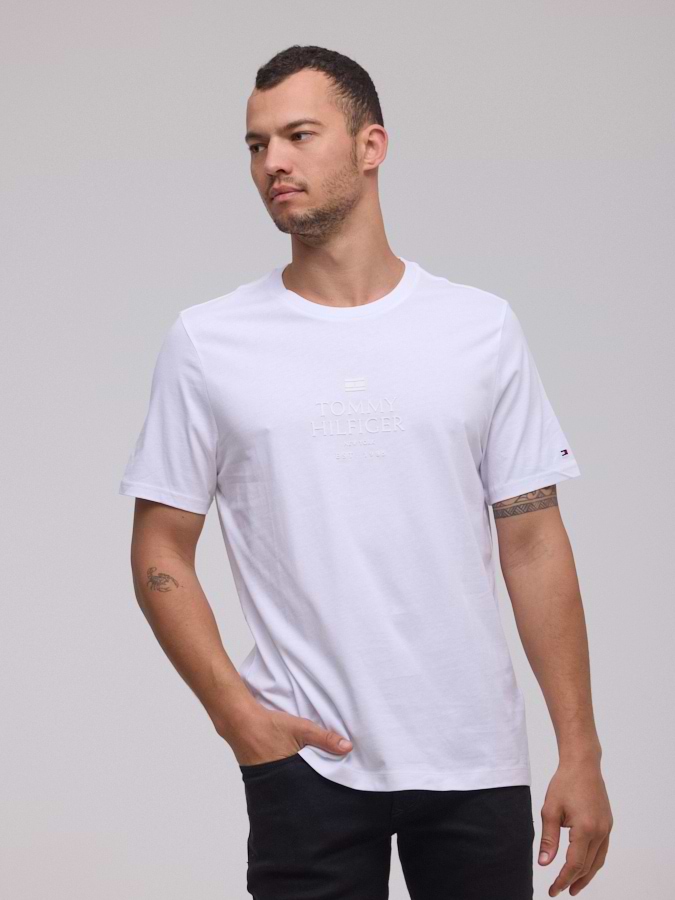 TOMMY HILFIGER logo t shirt חולצה בצבע לבן עם לוגו לבן במרכז המוצר