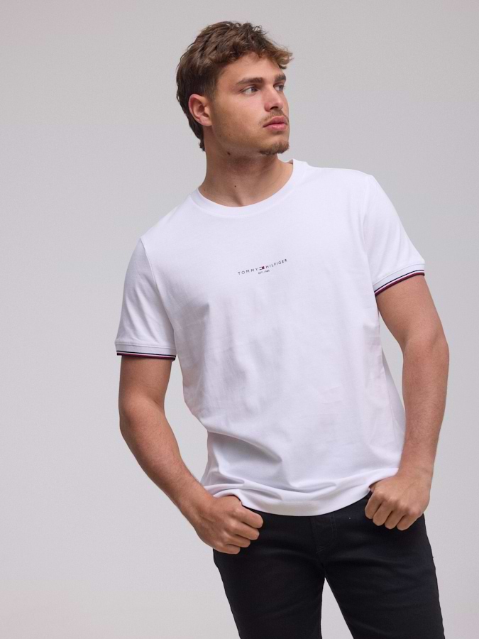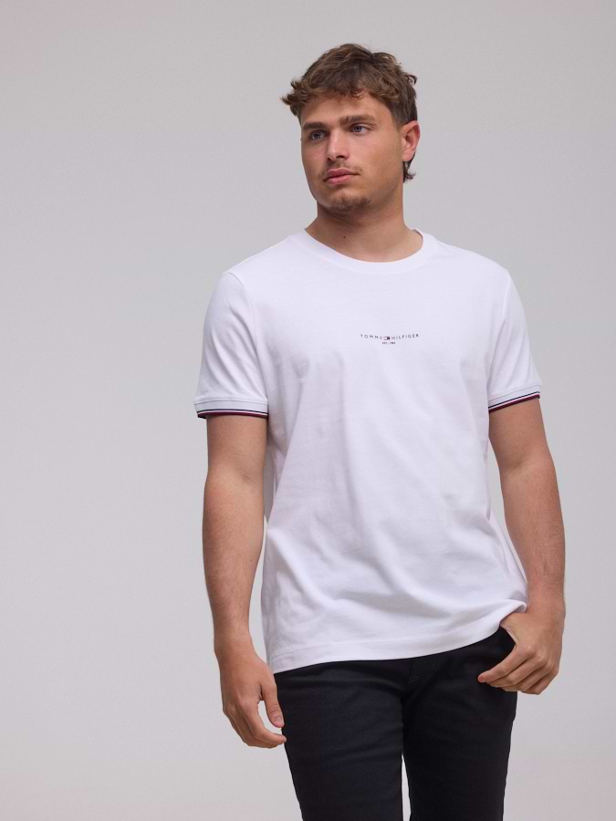 TOMMY HILFIGER logo t shirt חולצה בצבע לבן עם לוגו קטן בחזית המוצר