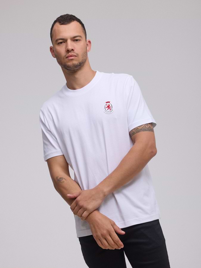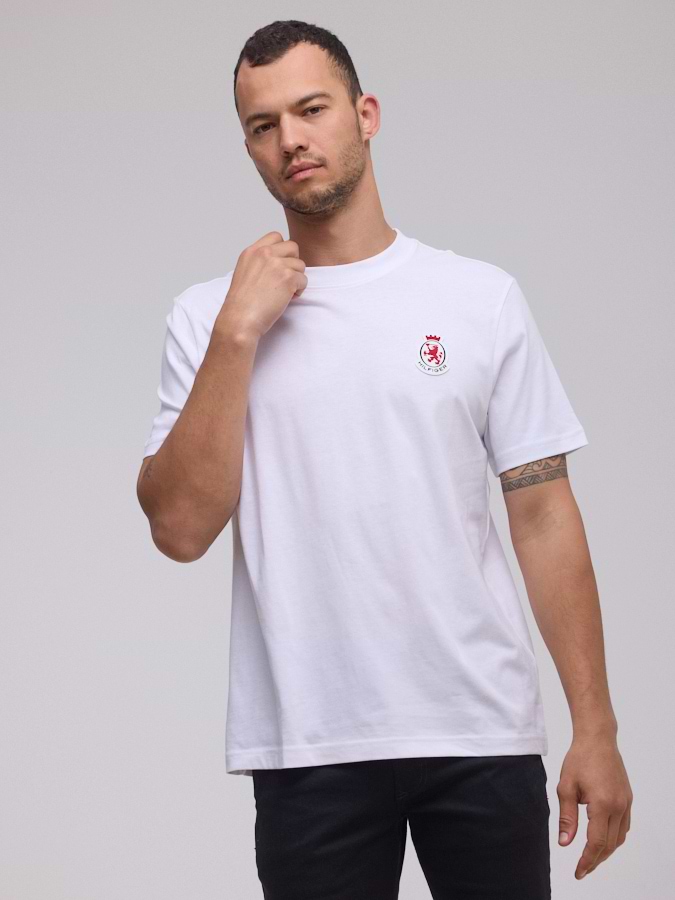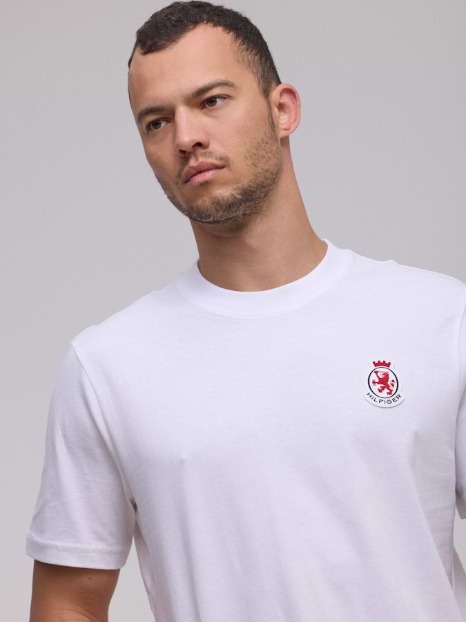 TOMMY HILFIGER logo t shirt חולצה בצבע לבן עם מדליה כתר אדום בצידי המוצר