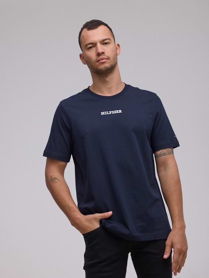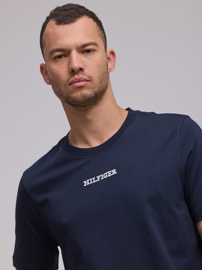 TOMMY HILFIGER logo t shirt חולצה בצבע נייבי עם רקמה קטנה בחזית הילפיגר