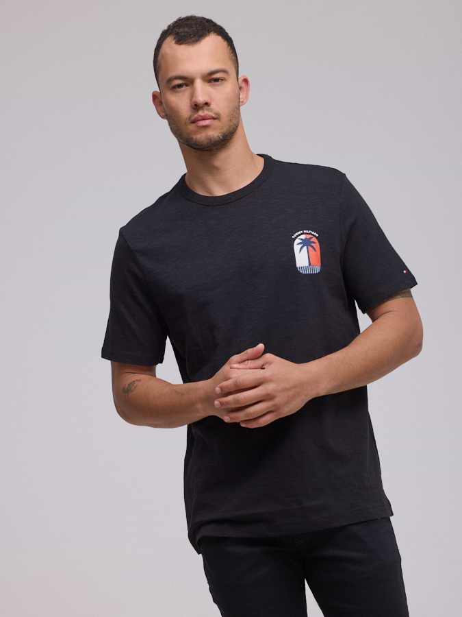 TOMMY HILFIGER logo t shirt חולצה בצבע שחור עם לוגו צידי עץ דקל