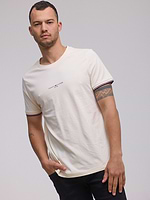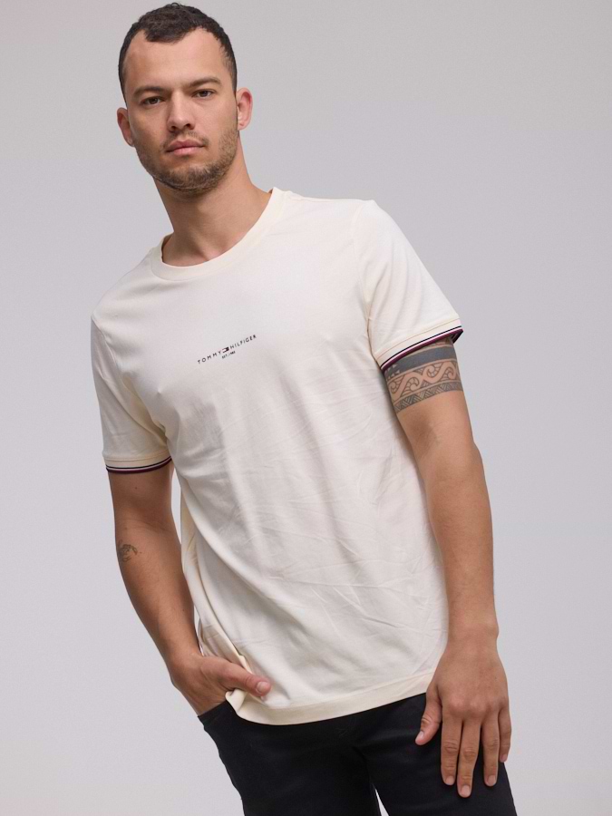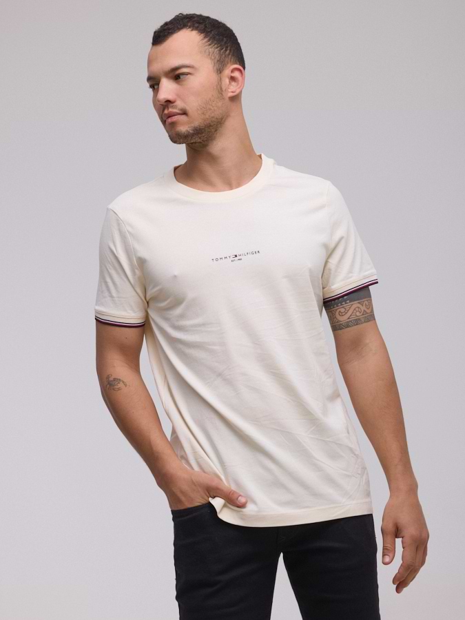 TOMMY HILFIGER logo t shirt חולצה בצבע שמנת עם לוגו קטן במרכז המוצר