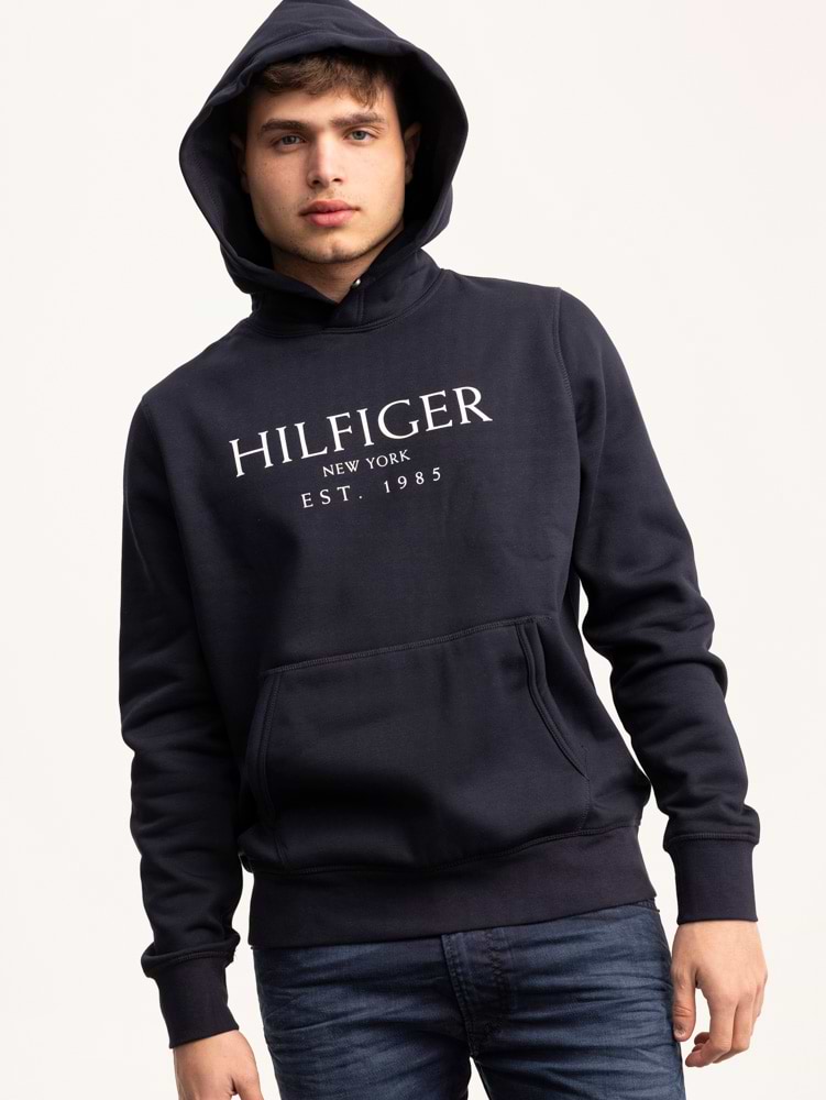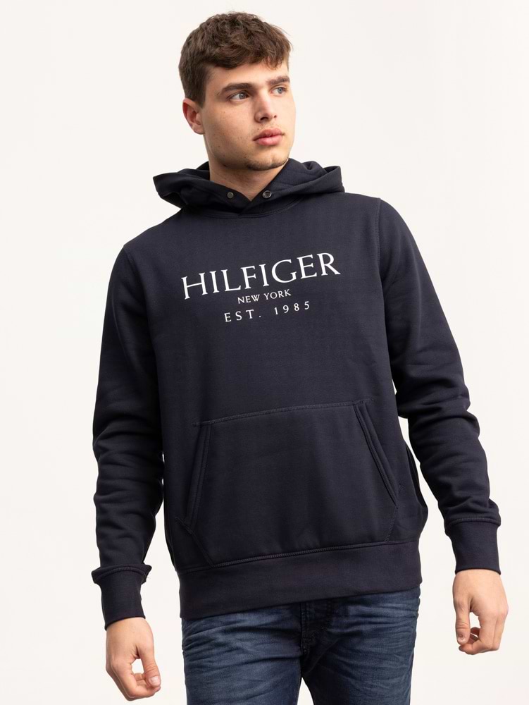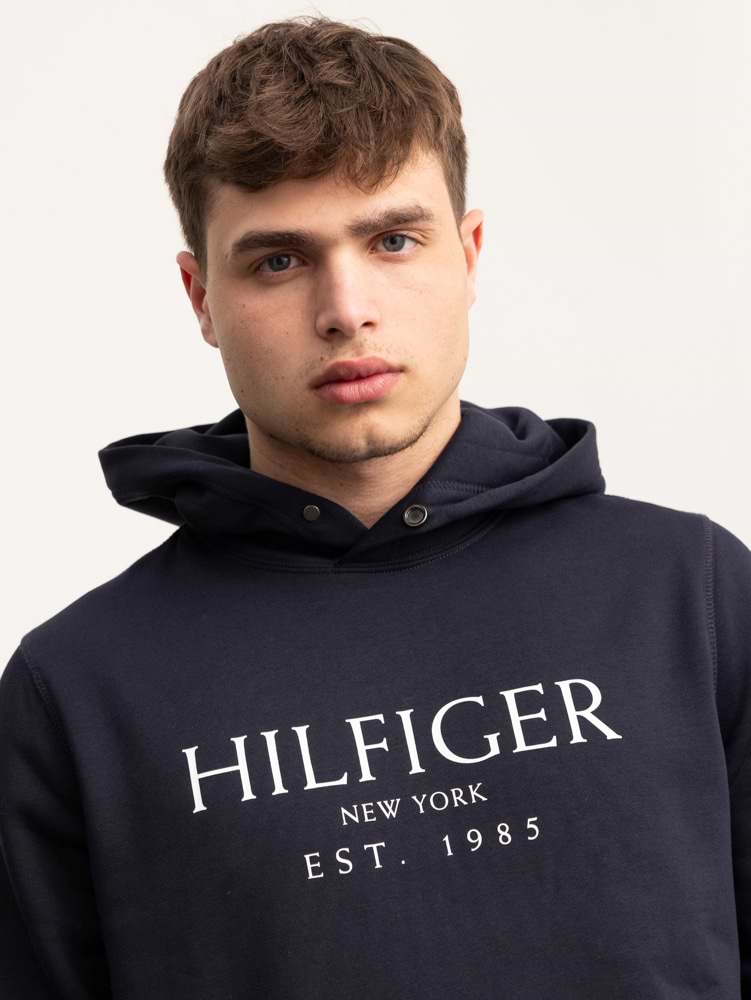 TOMMY HILFIGER navy blue hoodie center logo קפוצון בצבע כחול נייבי עם לוגו המותג בחזית