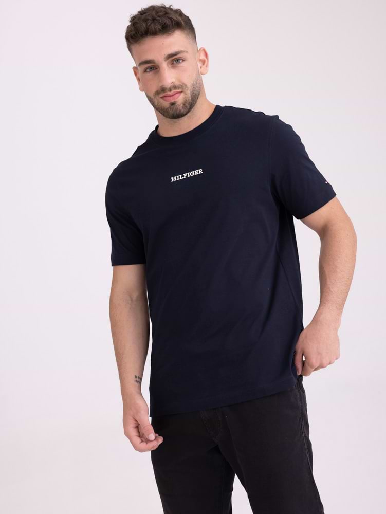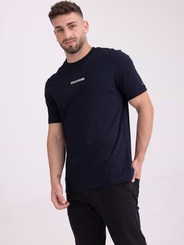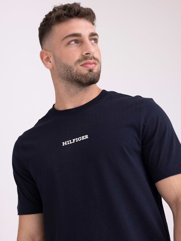 TOMMY HILFIGER navy hilfiger logo t shirt חולצה בצבע נייבי עם הילפיגר במרכז