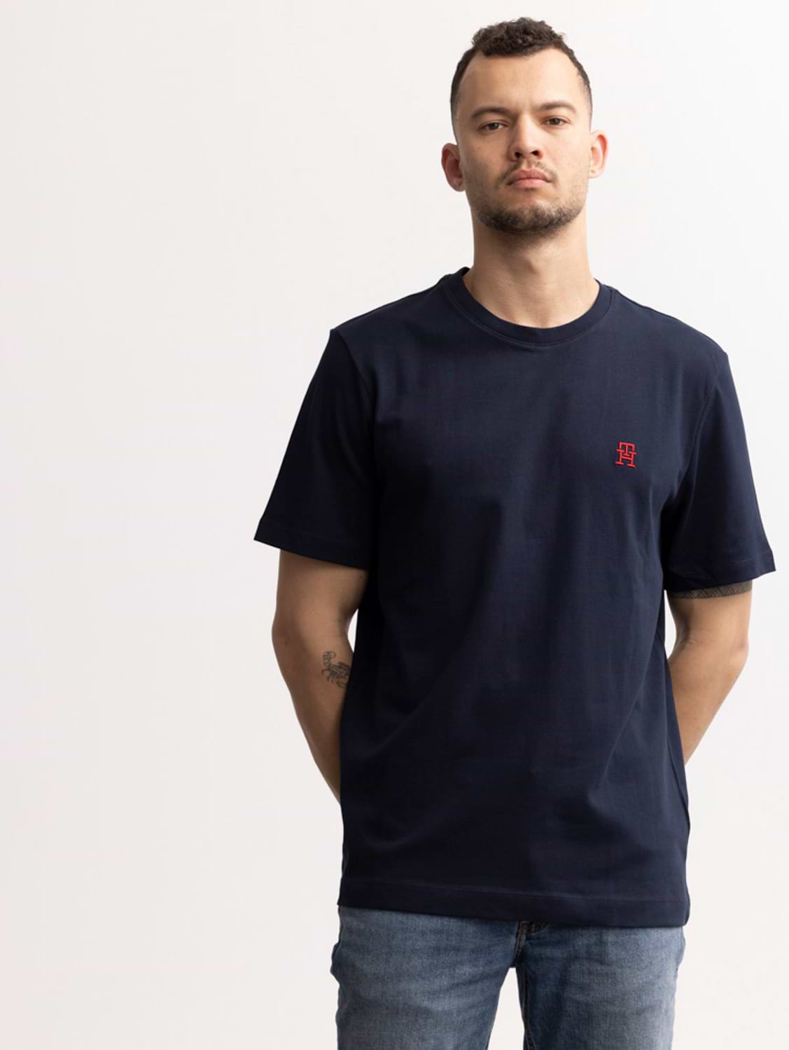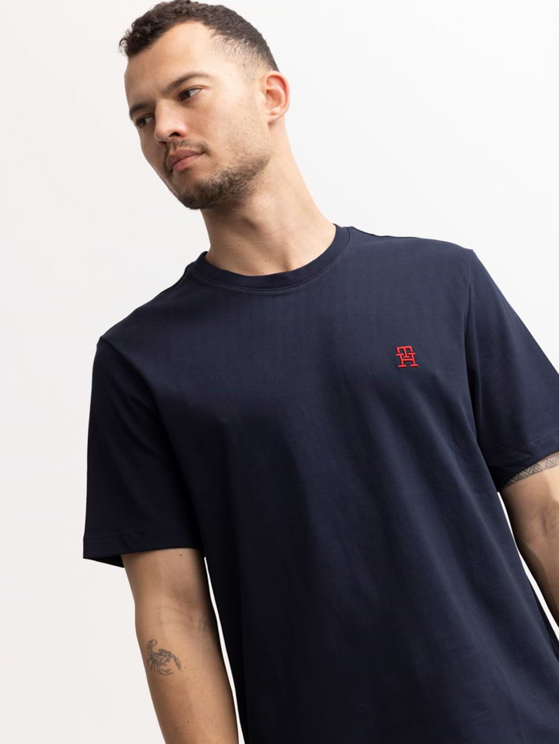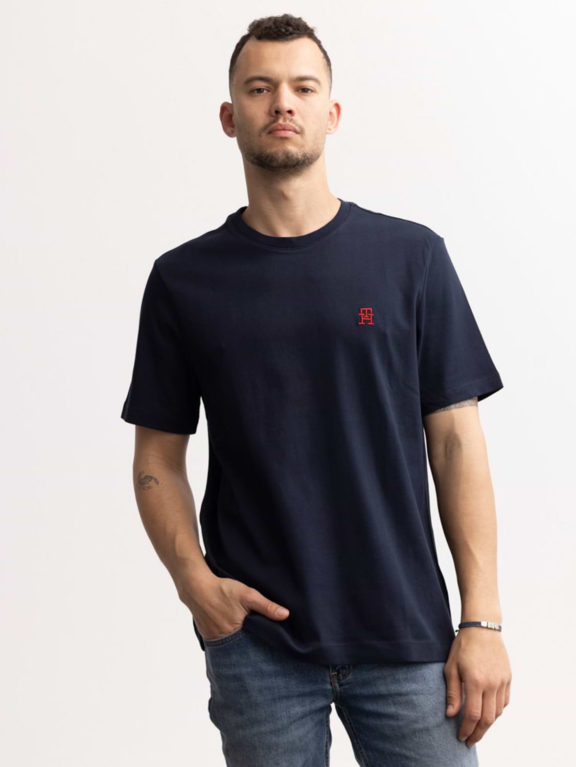 TOMMY HILFIGER navy red th t shirt חולצה בצבע נייבי עם רקמת המותג באדום TH