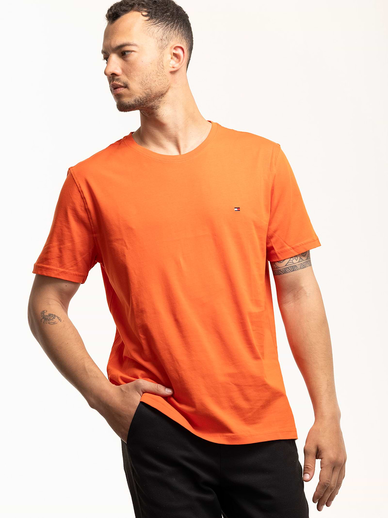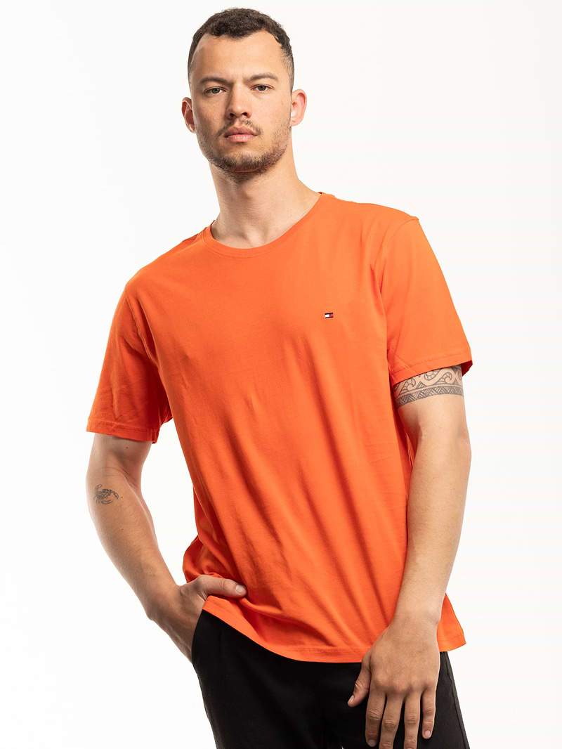 TOMMY HILFIGER orange basic t shirt חולצת בייסיק בצבע כתום אפרסק עם לוגו המותג צידי (EXTRA SLIM)