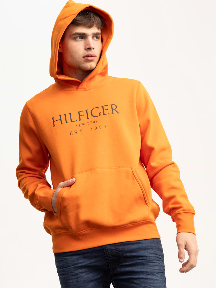 TOMMY HILFIGER orange hoodie center logo קפוצון בצבע כתום עם לוגו המותג בחזית