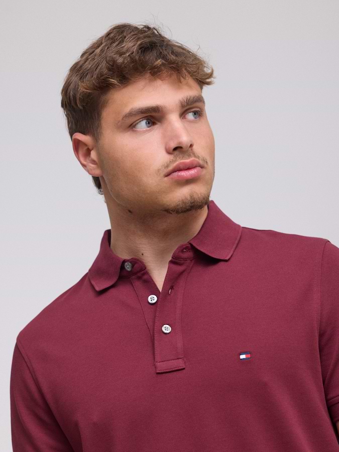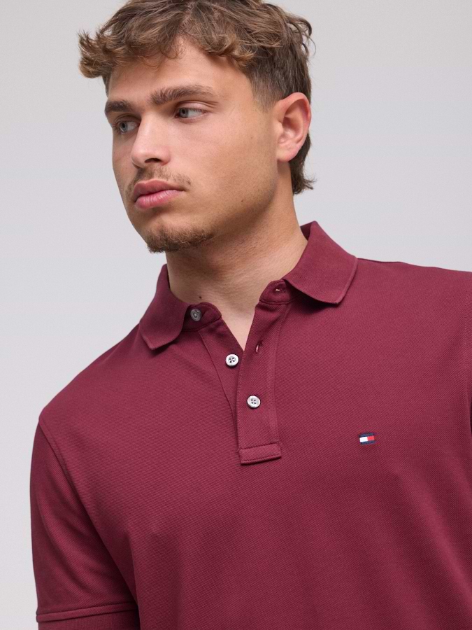 TOMMY HILFIGER polo bourduex small logo פולו סלים פיט בצבע בורדו עם לוגו קטן