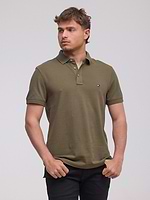 TOMMY HILFIGER polo olive green small logo פולו סלים פיט בצבע ירוק זית עם לוגו קטן