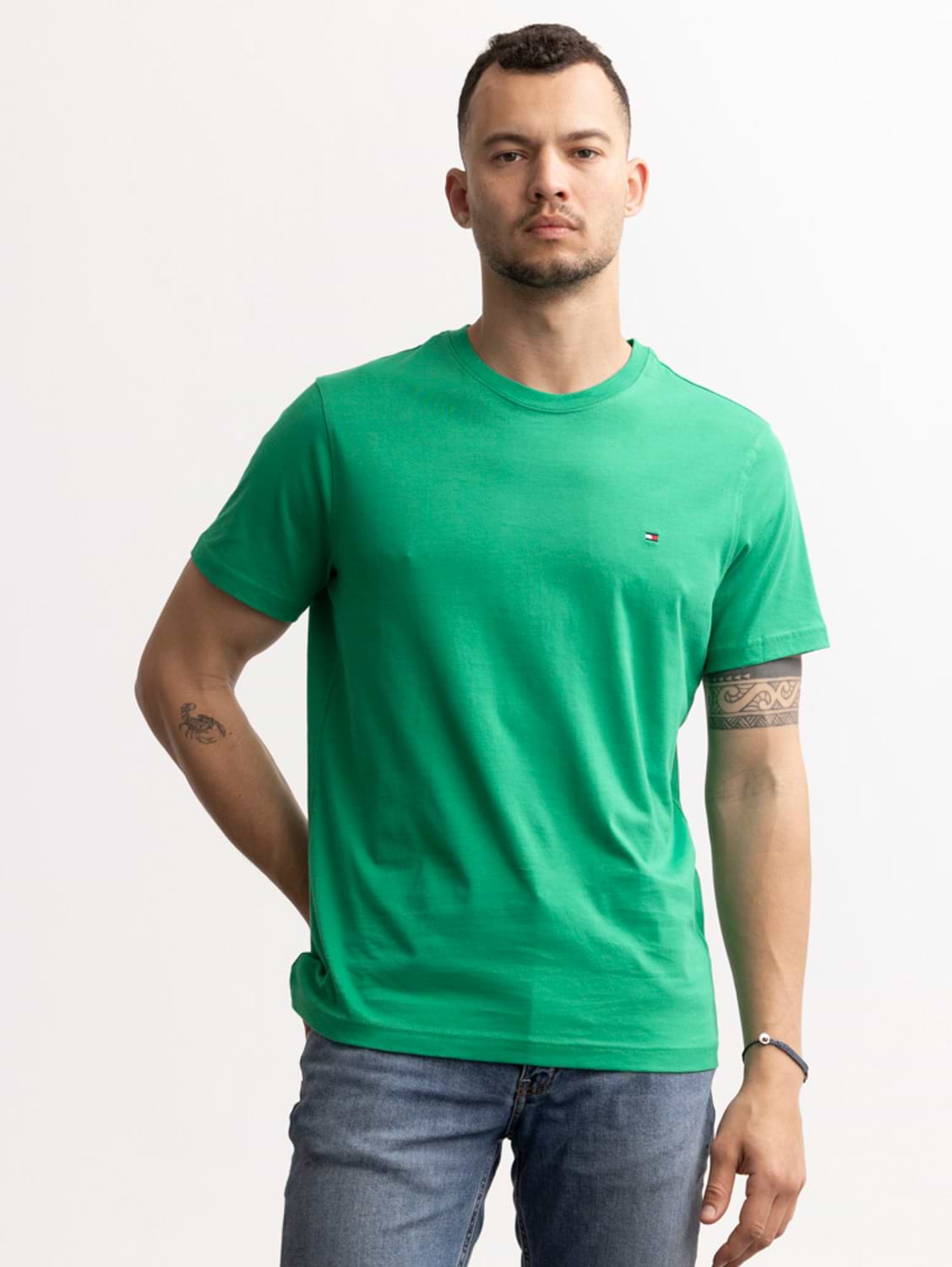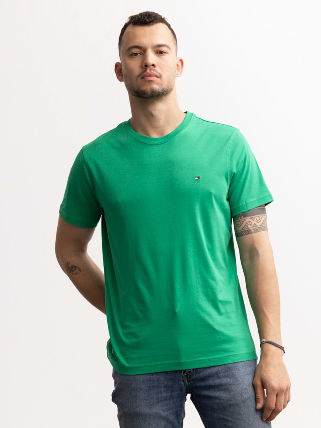 TOMMY HILFIGER rolex green t shirt חולצת בייסיק עם לוגו קטן בצבע ירוק רולקס (EXTRA SLIM)
