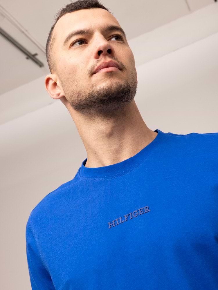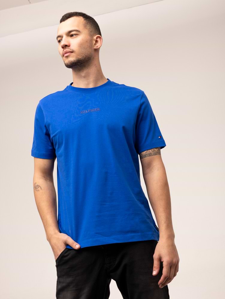 TOMMY HILFIGER royal blue hilfiger center shirt חולצה בצבע כחול רויאל עם לוגו גומי הילפיגר במרכז