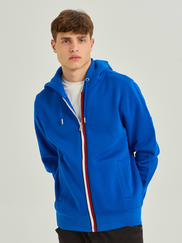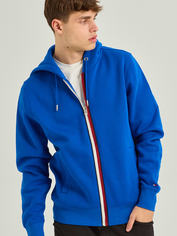 TOMMY HILFIGER royal blue zip hoodie קפוצון בצבע כחול רויאל עם ריצרץ בצבעי המותג