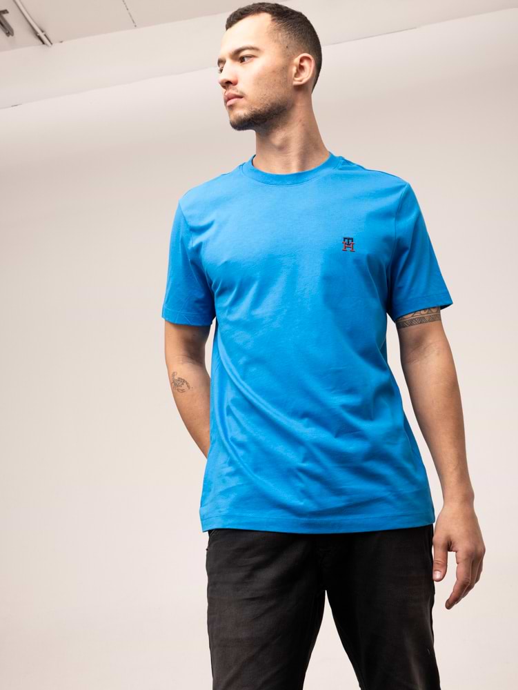 TOMMY HILFIGER small TH shirt חולצה בצבע כחול מרקר עם רקמה קטנה TH