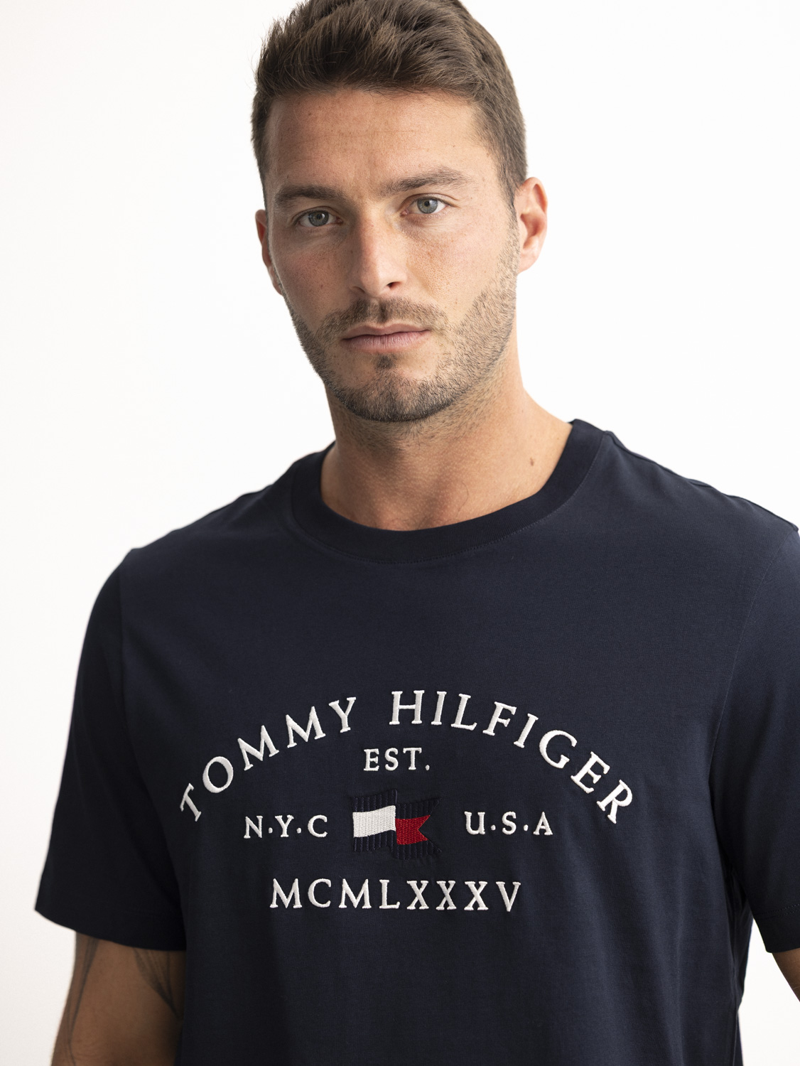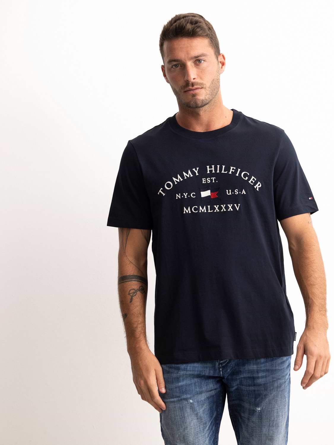 TOMMY HILFIGER t shirt blue חולצה שרוול קצר עם רקמה בחזית בצבע נייבי
