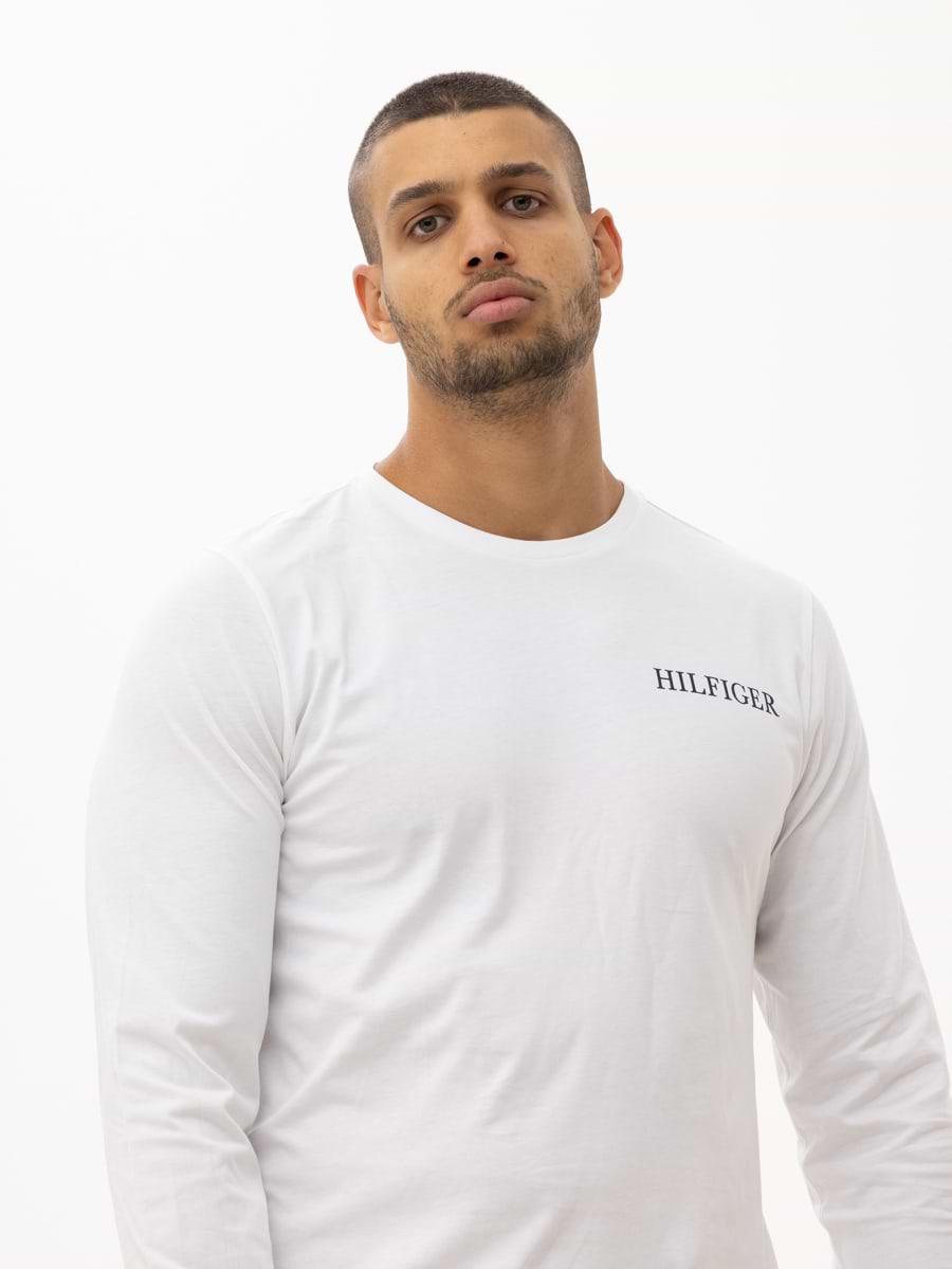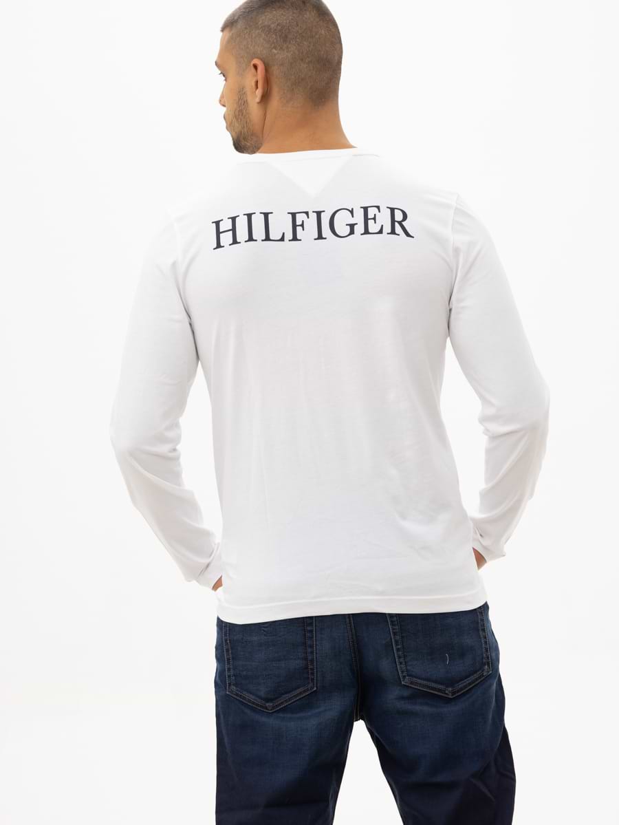 TOMMY HILFIGER white long sleeve t shirt חולצה בצבע לבן עם כיתוב בגב