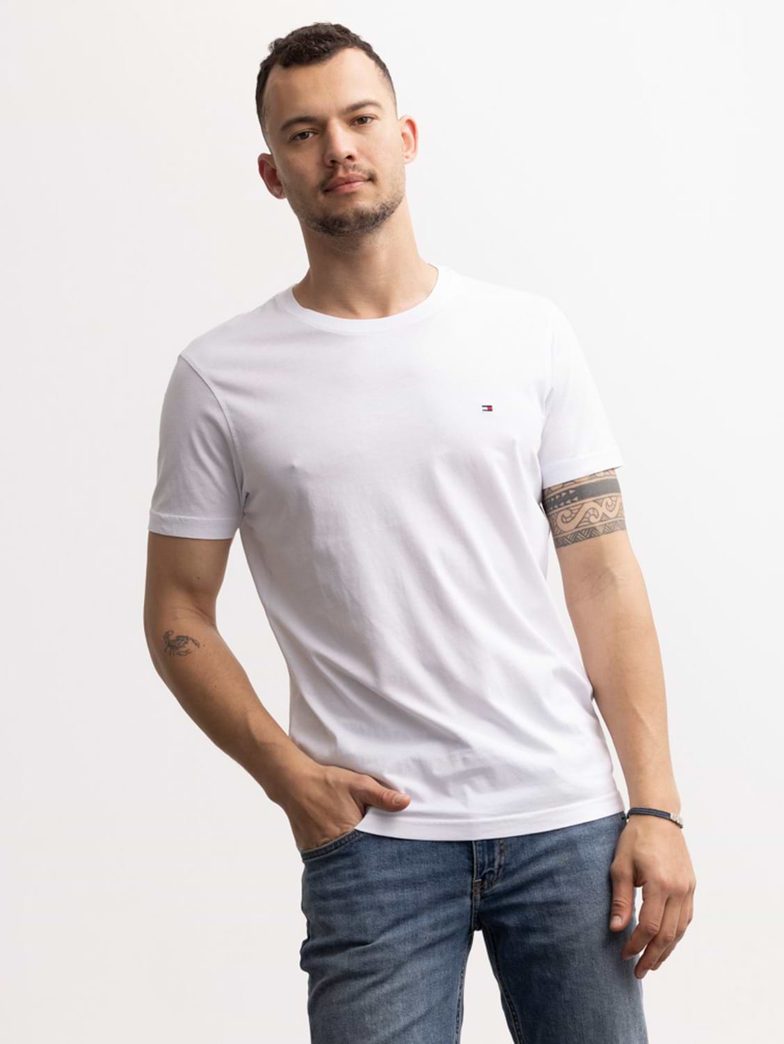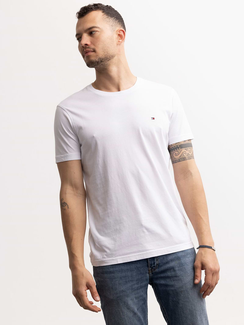 TOMMY HILFIGER white t shirt חולצת בייסיק עם לוגו קטן בצבע לבן