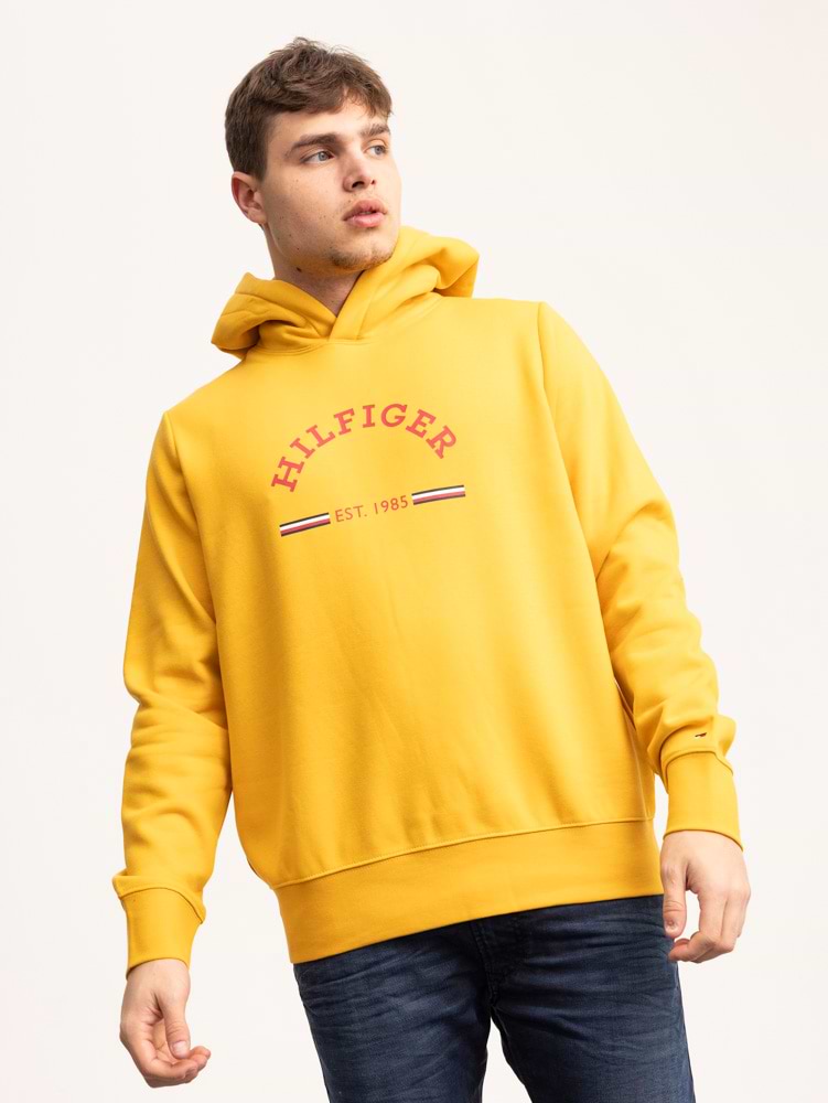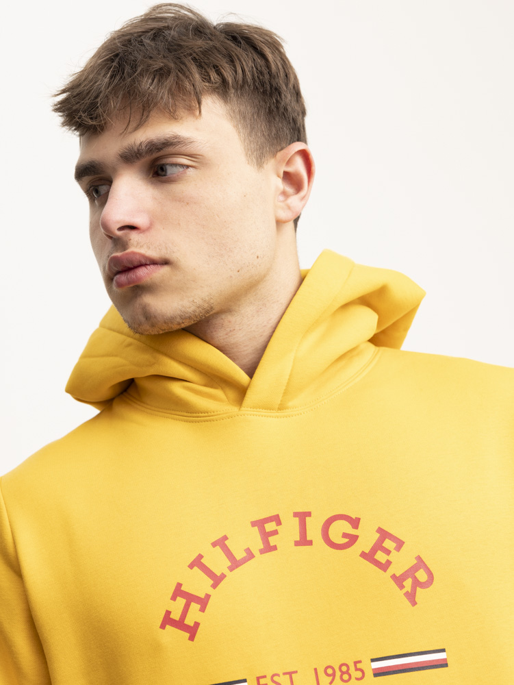 TOMMY HILFIGER yellow red hoodie קפוצון בצבע צהוב ולוגו המותג בצבע אדום הילפיגר