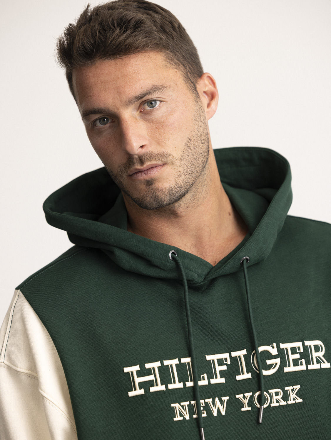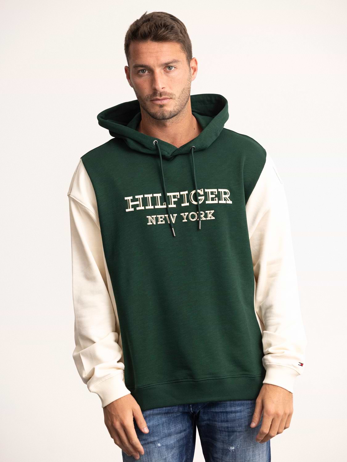 TOMMY HILFIGERgreen cream big logo קפוצון בצבע ירוק עם שרוולים בצבע קרם